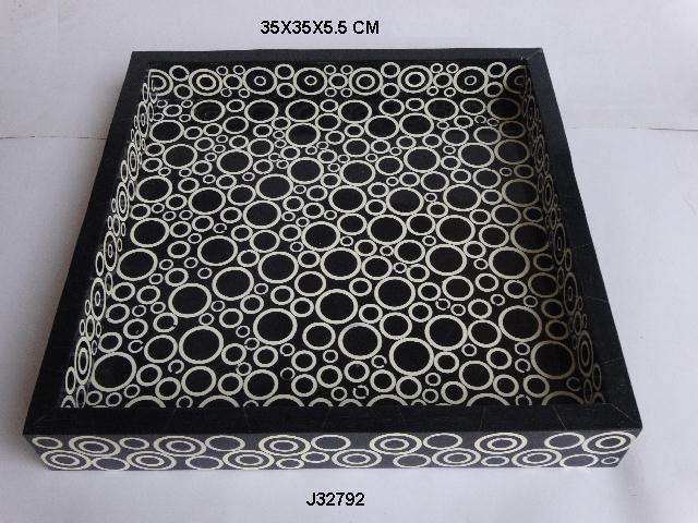 Bandeja de hueso con diseño de Chevron, bandeja de servicio personalizada con incrustación de hueso, color rojo y blanco