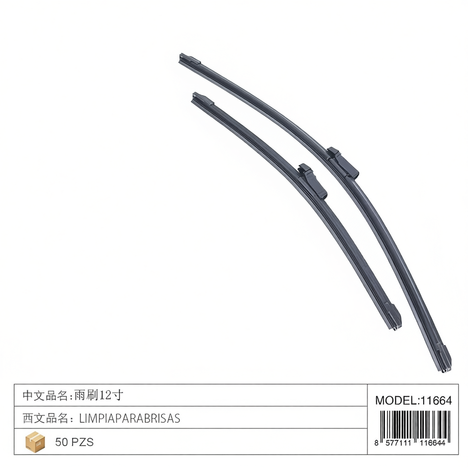 Escobilla Limpiaparabrisas On Teck Sa De Cv Sin Eje, 12 Pulgadas, Caucho Natural, Para Parabrisas de Auto, 11664