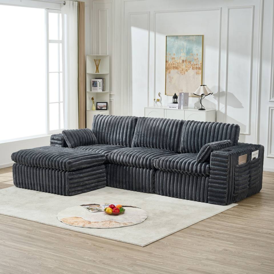 Sofá Seccional Modular Moderno sin Patas con Forma Cuadrada, Tapizado en Tela, Relleno de Espuma y Compresión sin Patas
