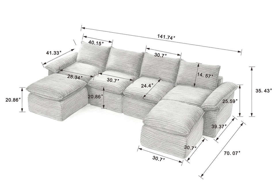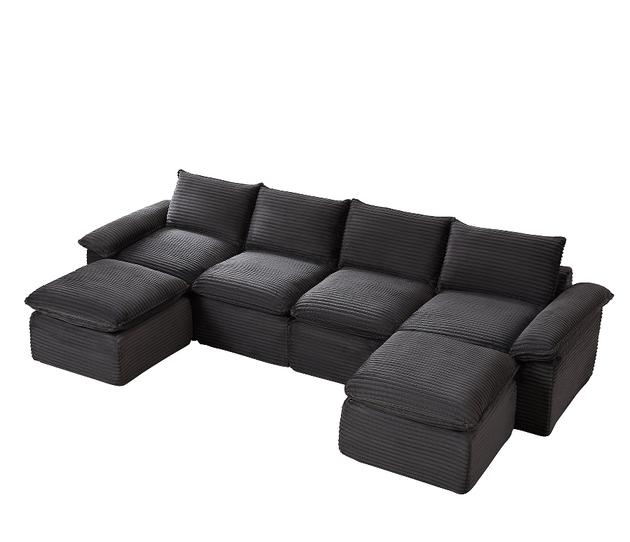 Sofá Seccional Extra Grande sin Estructura, de Espuma Comprimida, para Sala de Estar, Moderno, Convertible, Modular, de Corduroy, Envasado al Vacío