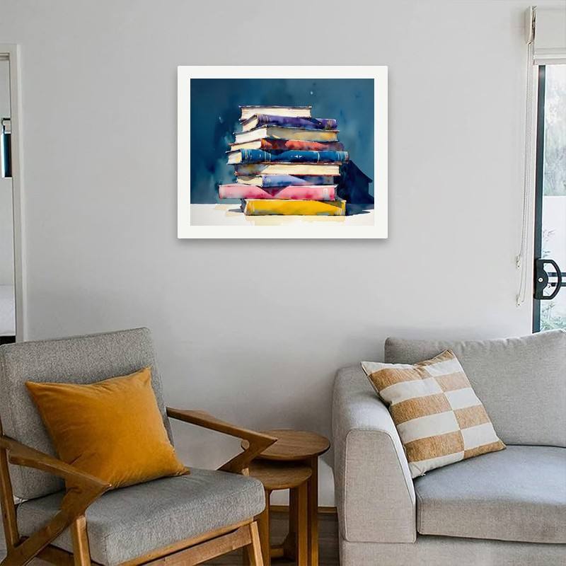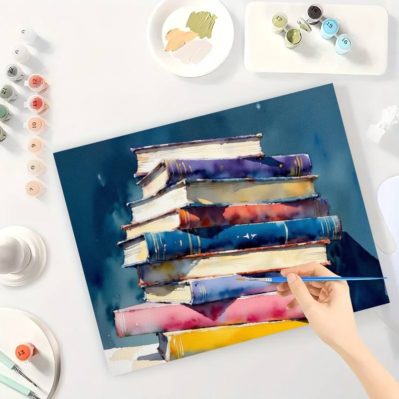 Kit de pintura por números para amantes de los libros para adultos, libro colorido DIY apilado irregularmente de 16x20 pulgadas, regalos de arte sin marco