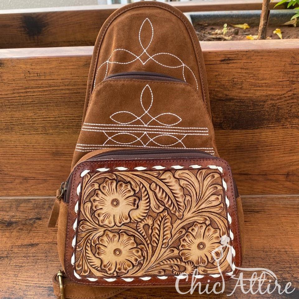 Nombre del producto:Mano Tooled Suede Leather Sling Bag