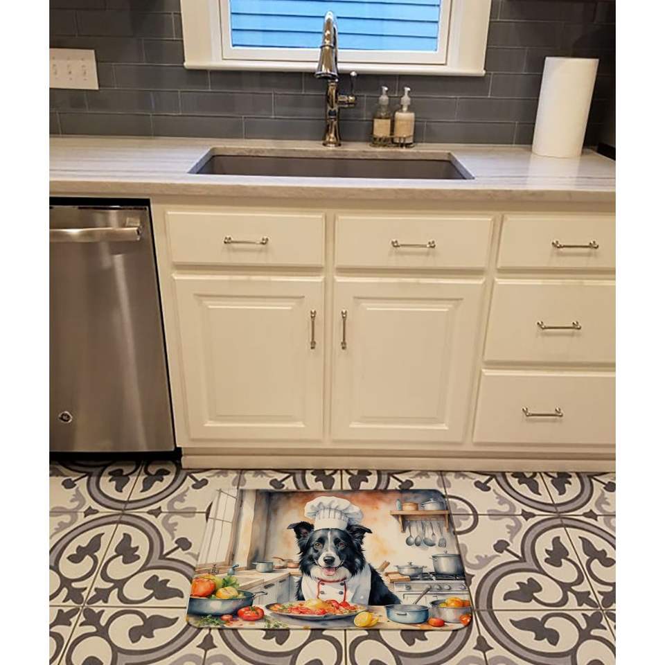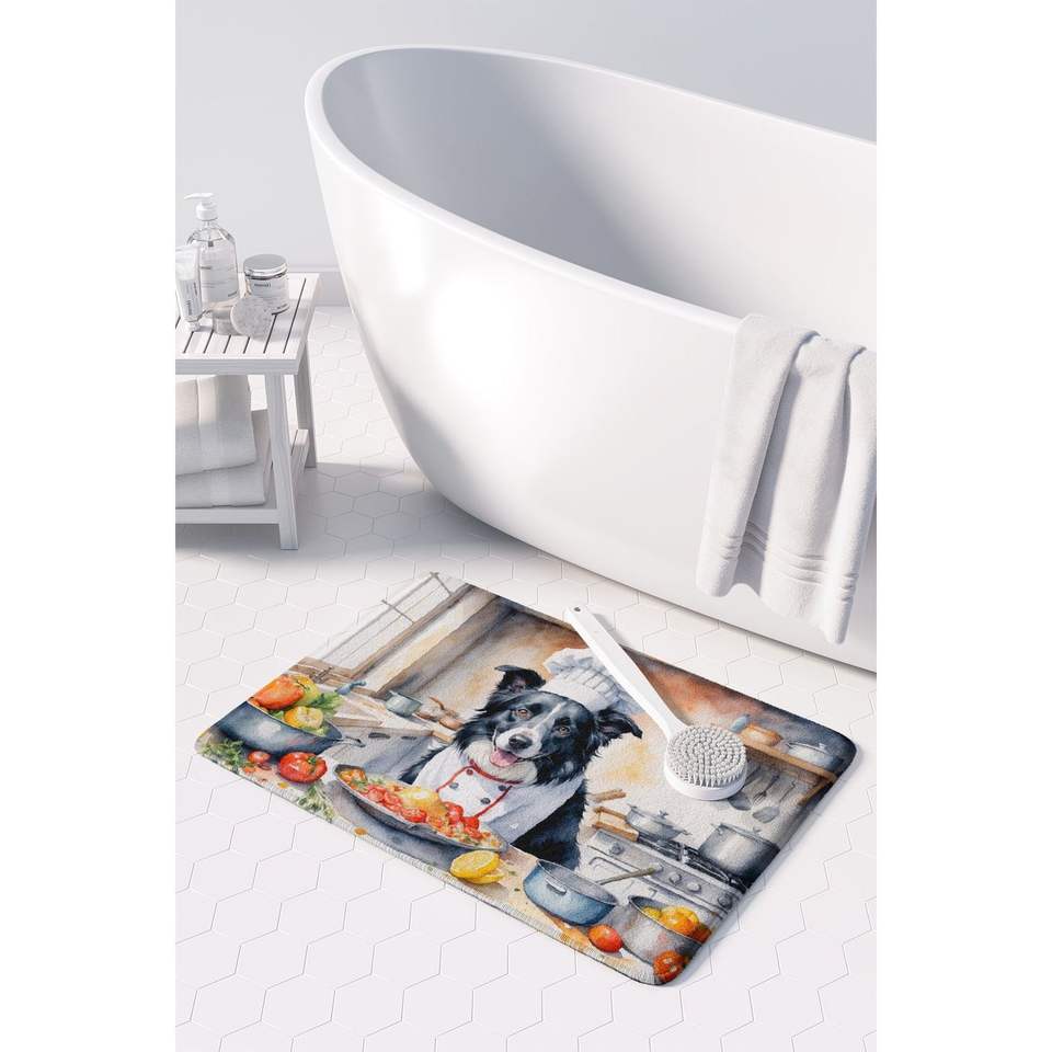 Alfombra de cocina de espuma viscoelástica Border Collie the Chef, cojín antifatiga lavable a máquina, alfombra de baño cómoda
