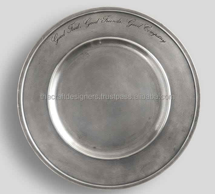 Placa de cargador redonda de diseño en relieve con borde, plato y bandeja de servicio de Metal de alta calidad, venta al por mayor, plato reutilizable, cargador de plato, ventas