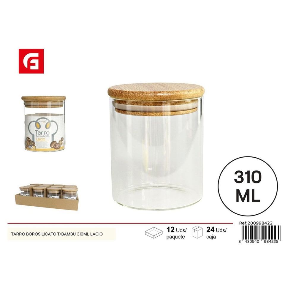 Tarro de vidrio borosilicato con tapa de bambú 310 ml-Cristalería