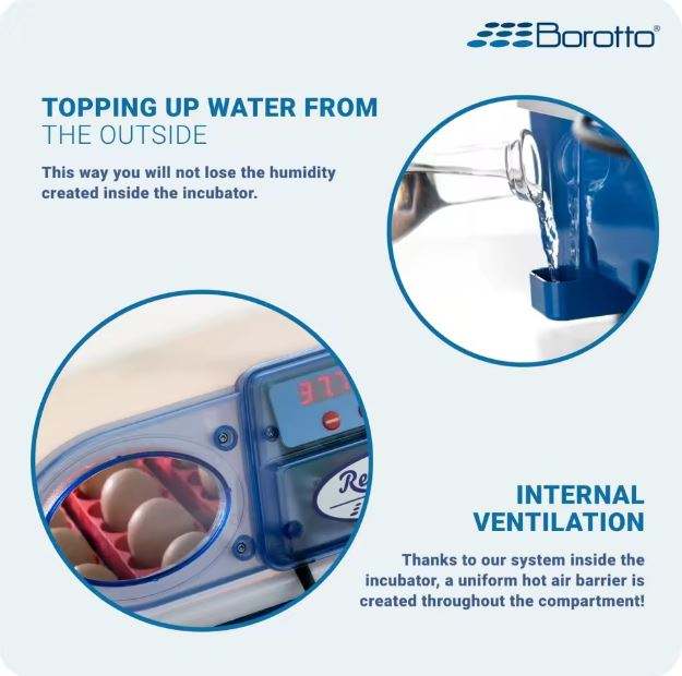 Incubadoras Automáticas Profesionales Borotto Real 24 para Huevos de Gallina, Italia, Incubadora Automática para 24/96 Huevos en Venta