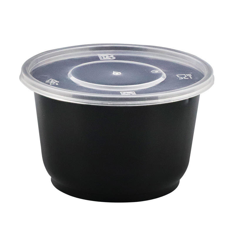 Borui Disposable Round Food Container Black 425ml With Lid Microwave Safe Takeaway Bowl