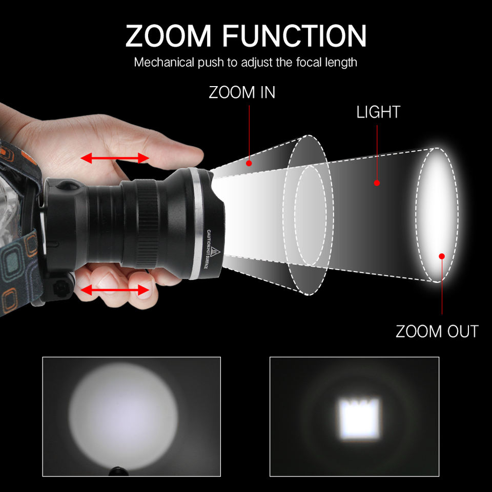 Boruit-Faro de alta potencia impermeable con zoom, 1000lm, 3 modos, recargable