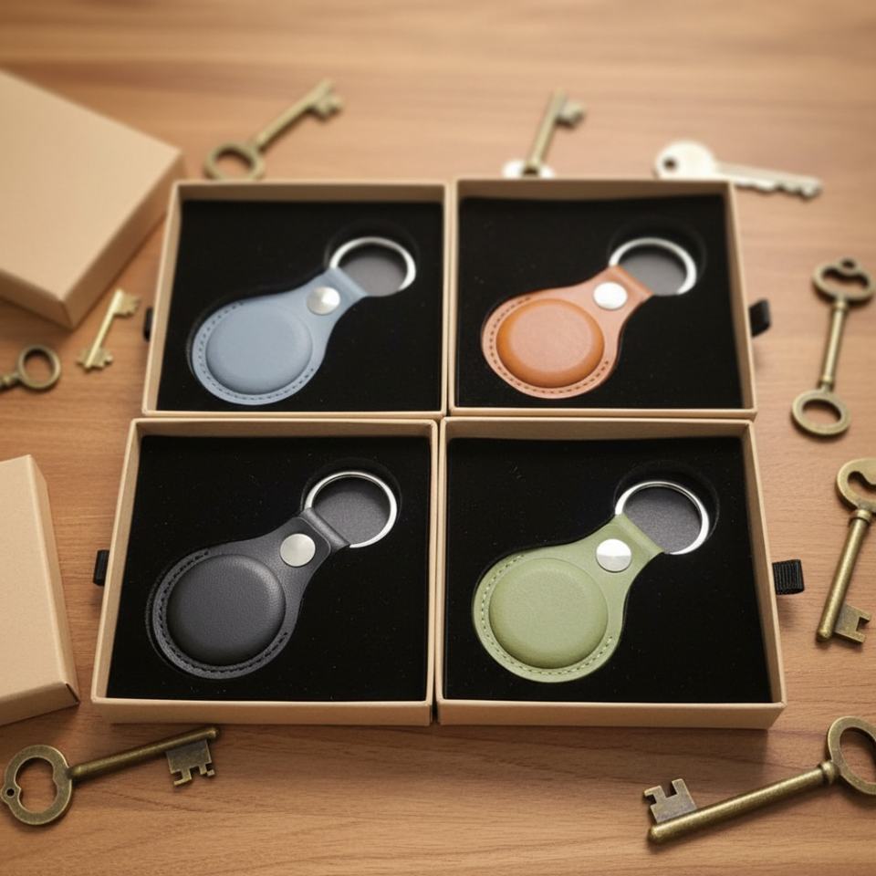 Boshiho - Fundas Protectoras para Llaves Hechas a Mano con Cuero Genuino, Soporte Portátil para AirTag con Cierre de Hebilla para Decoración de Bolsos