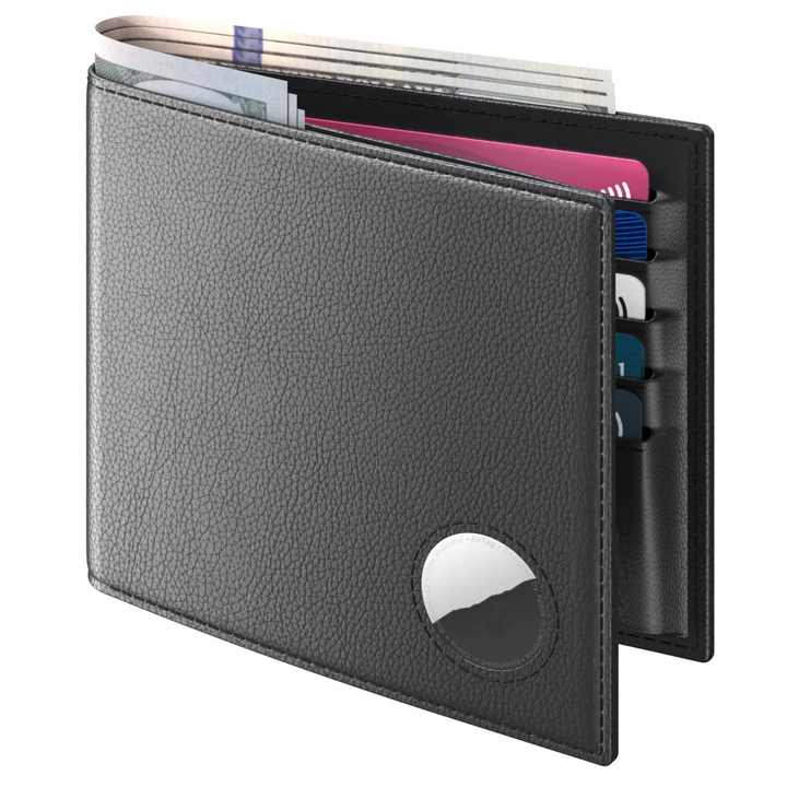 Carteras de Cuero Genuino Boshiho con Bolsillo para Monedas, Personalización de Logotipo, Tarjetero para Hombre, Cartera de Cuero para Hombre con AirTag