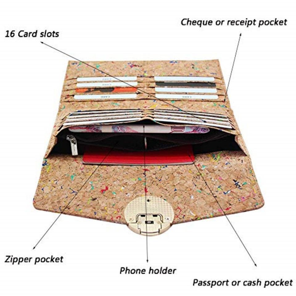 Boshiho RTS - Cartera de Corcho para Mujer con Bloqueo RFID, Bolso de Mano Tipo Sobre, Porta Teléfono, Cartera de Corcho Vegano para Mujer