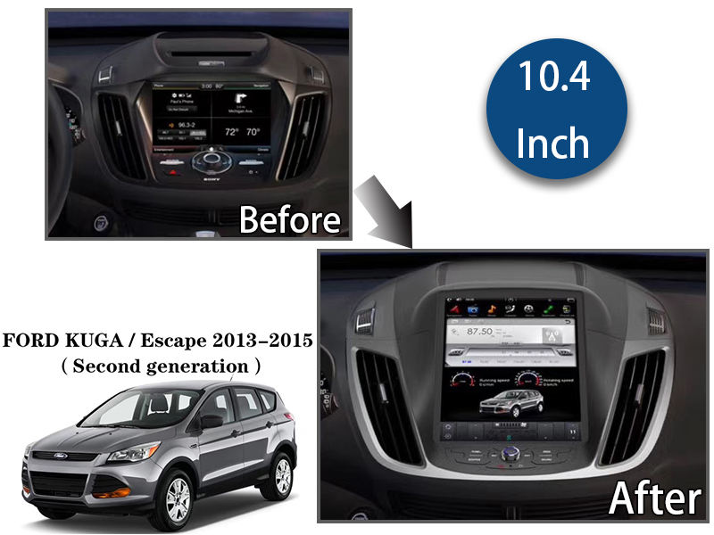 Radio de Coche Bosstar con Pantalla Vertical Android de 10.4 Pulgadas con GPS para Ford KUGA Escape 2013-2015