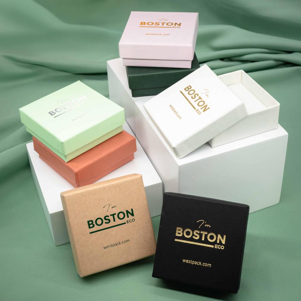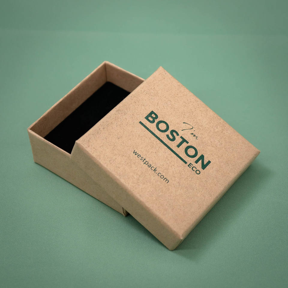 Caja de joyería con forro de terciopelo reciclable Marrón mate con logotipo personalizado Boston ECO para colgantes pequeños, embalaje de lujo para regalos de joyería