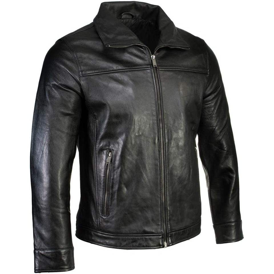 Boston Harbor 2.0 Chaqueta de cuero de cordero de Nueva Zelanda para hombre, abrigo de moda para coche, negro SFM1898