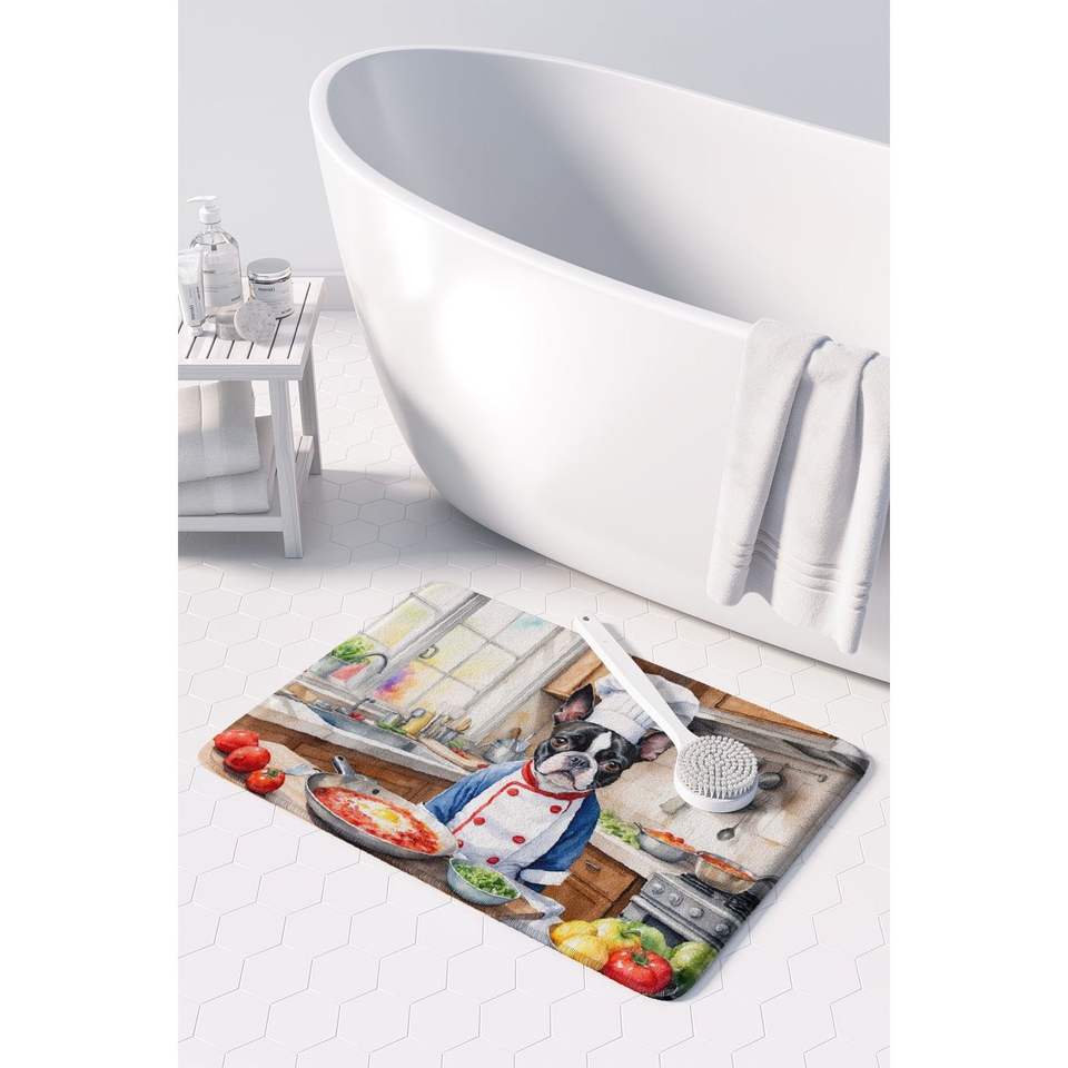 Boston Terrier el Chef Alfombra de cocina de espuma viscoelástica Cojín antifatiga lavable a máquina Alfombra de baño cómoda