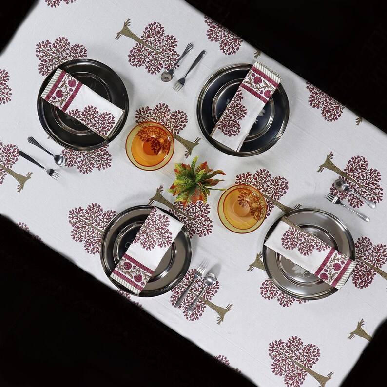 Juego de Manteles de Algodón Hechos a Mano en India, Botánicos, de 8 Plazas, de Lujo, de Alta Calidad, con Estampado Floral de Jaipur, Cuadrados, con Servilletas, Estampado a Mano