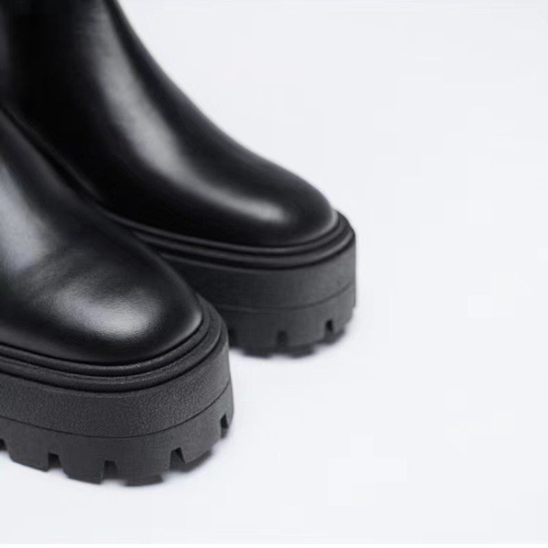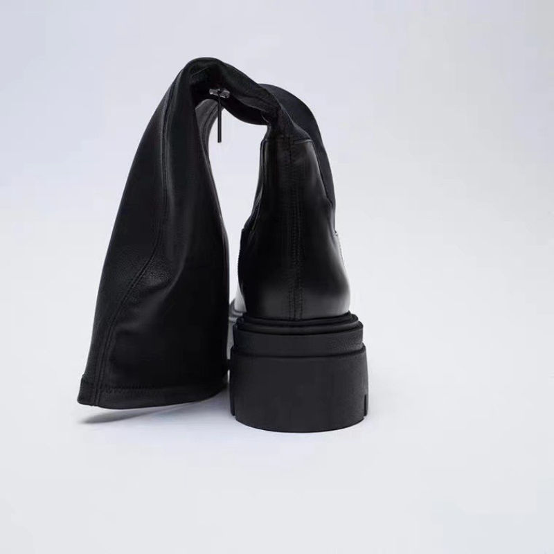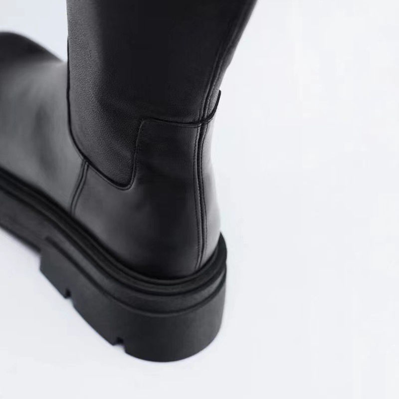 Botas para Mujer con Tacón Bajo, de Cuero Negro, Otoño 2025, Zapatos de Moda