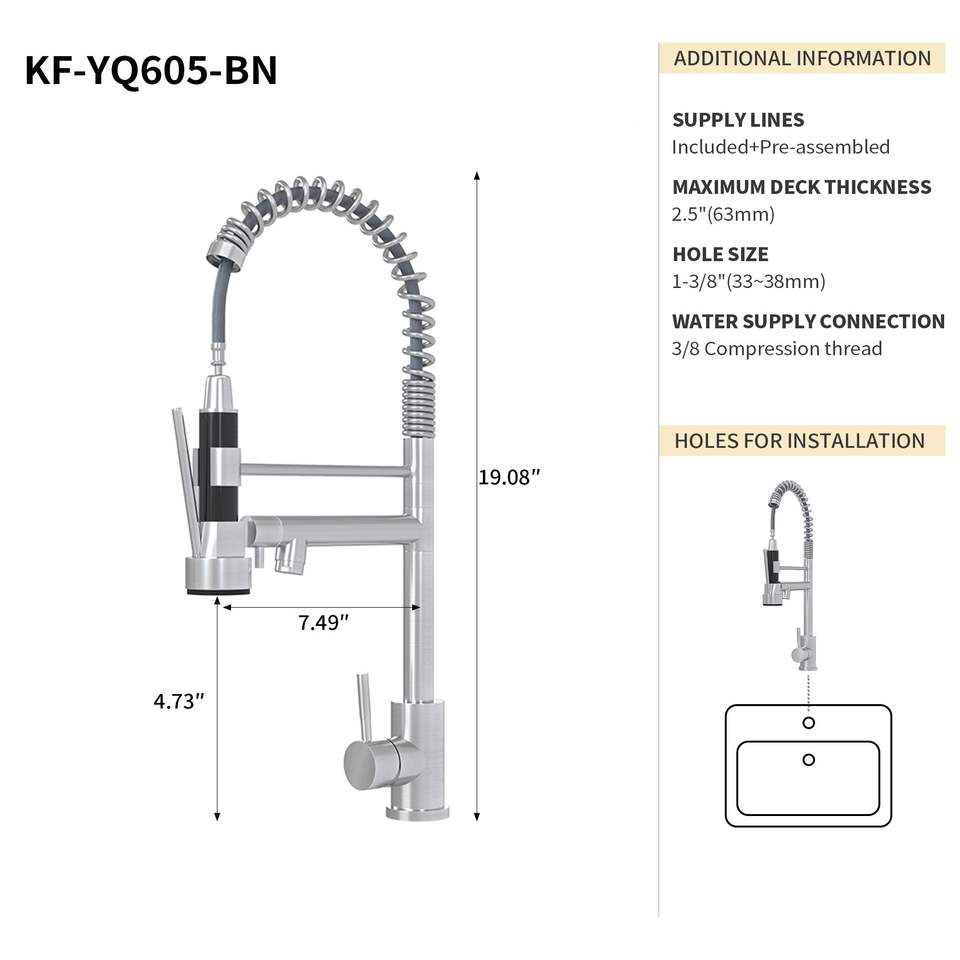 Grifo de Cocina de un Solo Manípulo de 19 Pulgadas Bothwa Home, Certificado por CUPC, Acabado en Níquel Cepillado