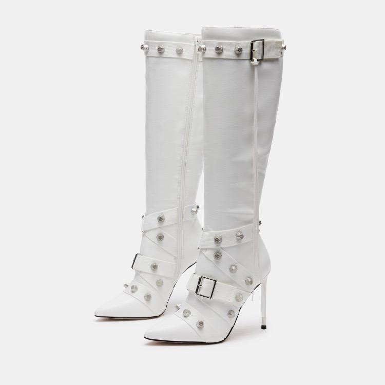 Botines de Mujer, Nuevo Material, Punta Puntiaguda, Diseño de Tacón de Aguja, Botas Altas hasta la Rodilla para Mujer, 2024