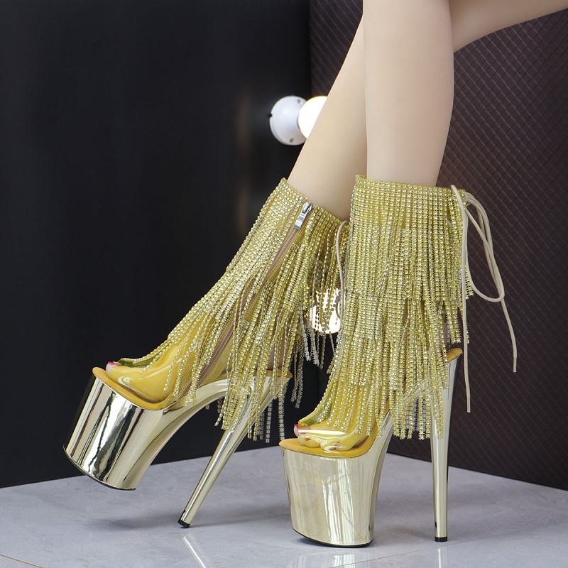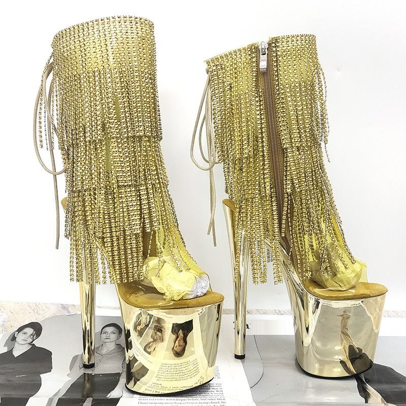 Botines de Mujer con Plataforma y Tacones Súper Altos, Borlas Doradas, Zapatos de Moda para Pole Dance, Botas para Damas