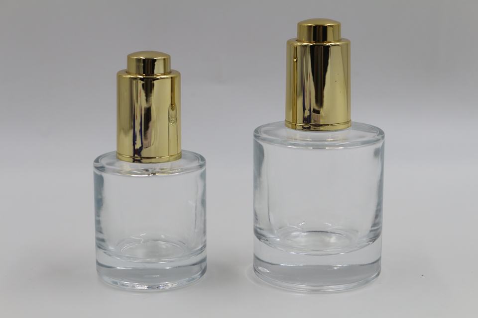 Botella con hombros, alta transparencia, fondo grueso, botellas cuentagotas de prensa de vidrio para tóner, loción, esencia, piel, Cae, líquidos