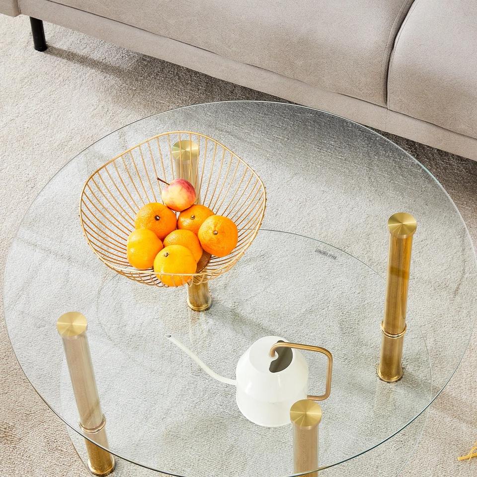 Mesa de Centro Ecológica con Base de Vidrio Templado y Patas de Acero Inoxidable Chapadas en Oro, Diseño Moderno para Muebles de Sala