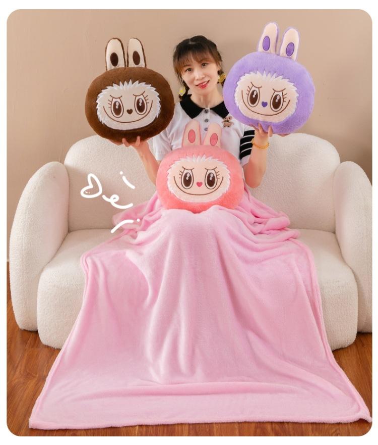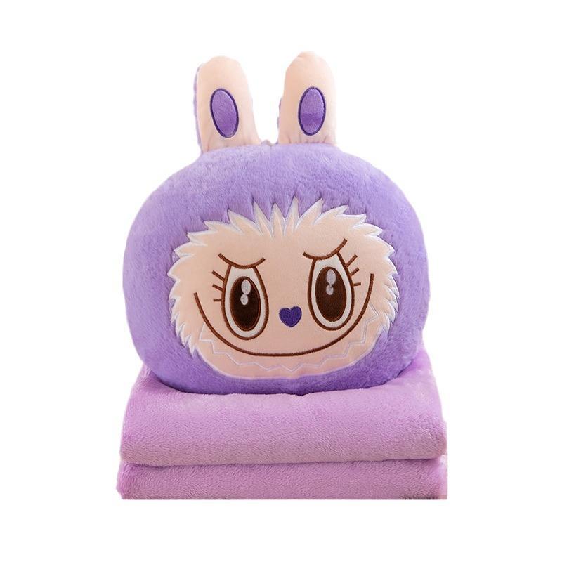 Almohada de Peluche Labubu de Botu, Cojín para Auto de Doble Uso, Linda Manta Almohada 2 en 1, Almohada de Hombro y Espalda para Niños, Manta de Diseño para Muñecas