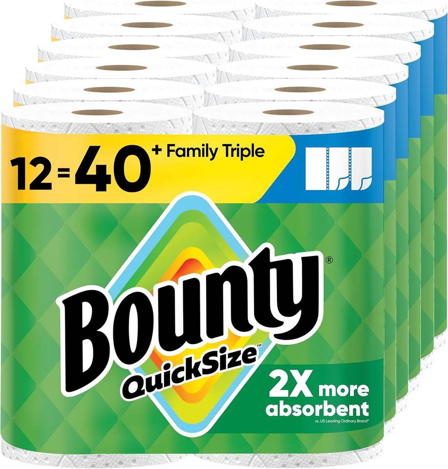 Rollos de Cocina Desechables Bounty de 2 Capas, Absorbentes, Suaves, Multidoblados, Ecológicos, Blancos, Tamaño Rápido, 16 Rollos Familiares = 40 Rollos Regulares