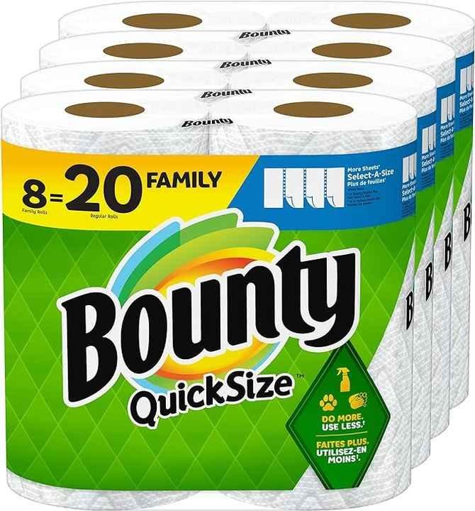 Toallas de papel Bounty Quick Size, blancas, 8 rollos familiares = 20 rollos regulares