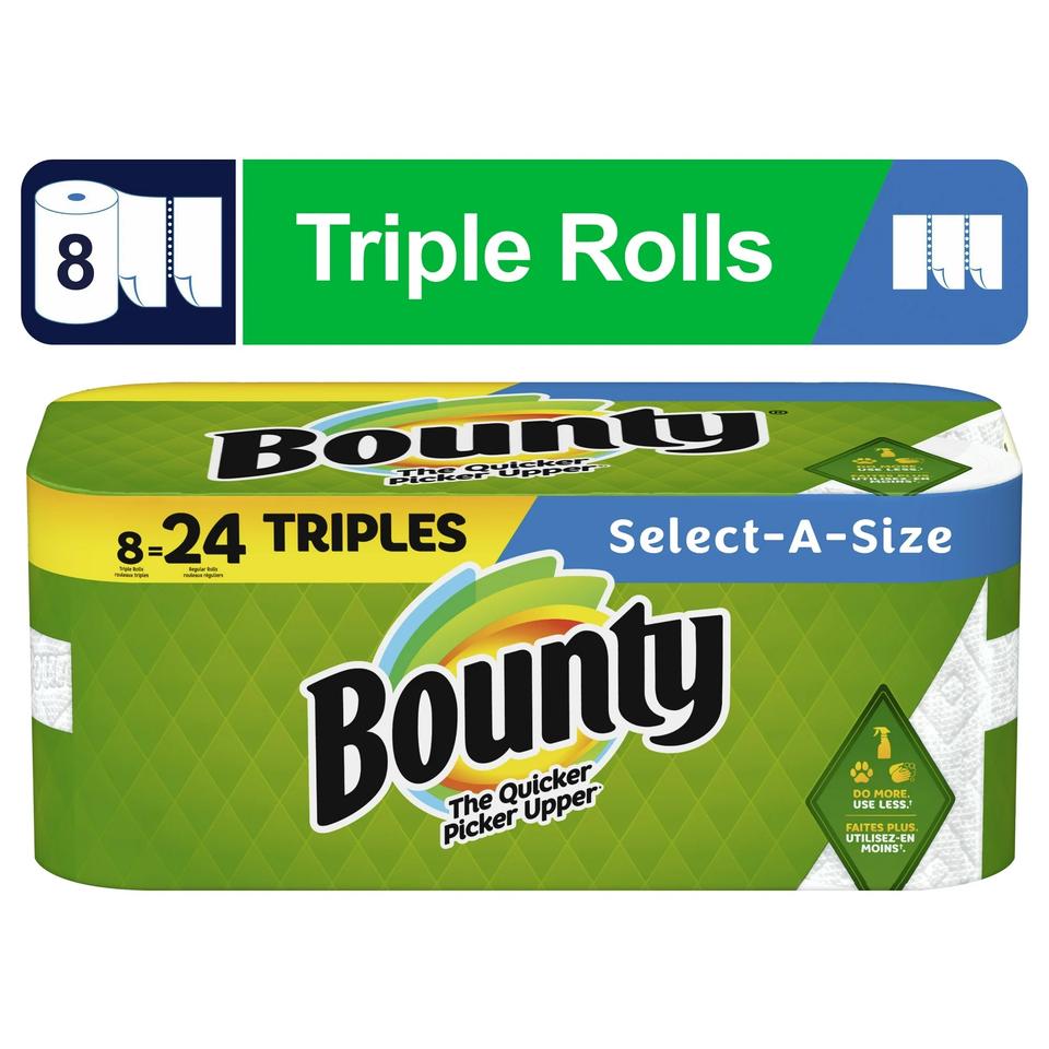 Bounty Select-a-Size Toallas de Papel, 8 Rollos Triples, Blanco