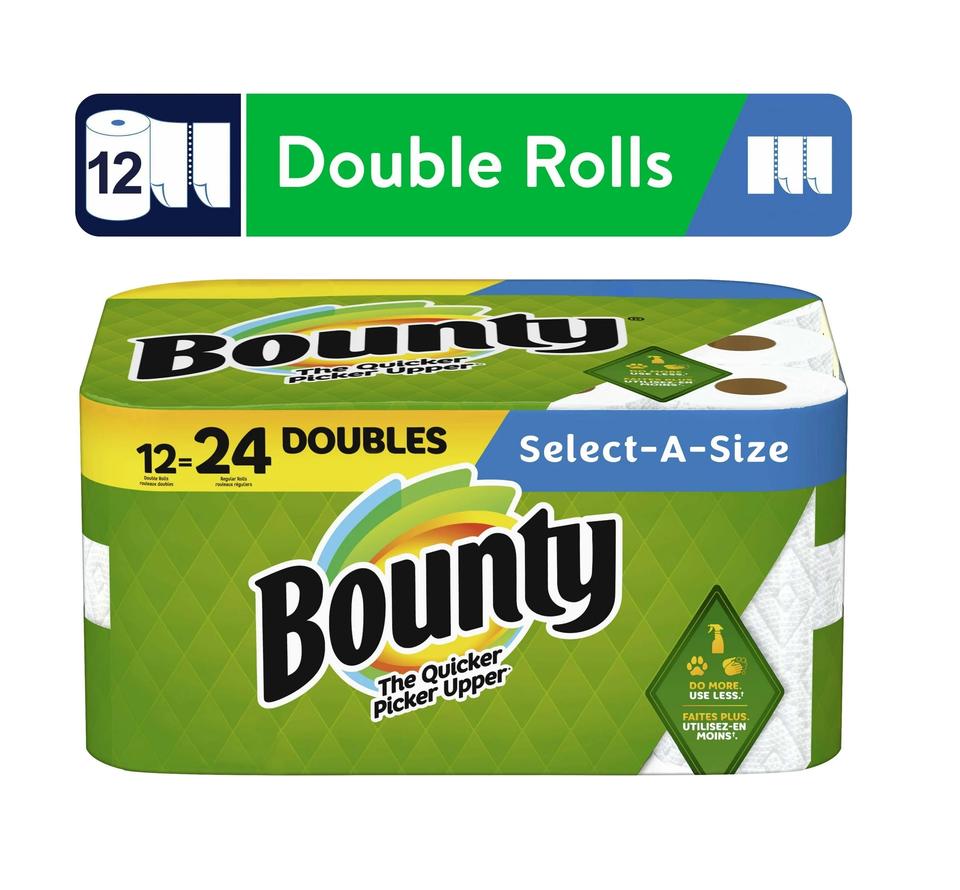 Bounty Select-a-Size Papel higiénico blanco 12 rollos dobles Pulpa de madera virgen Hecho en Alemania para uso doméstico