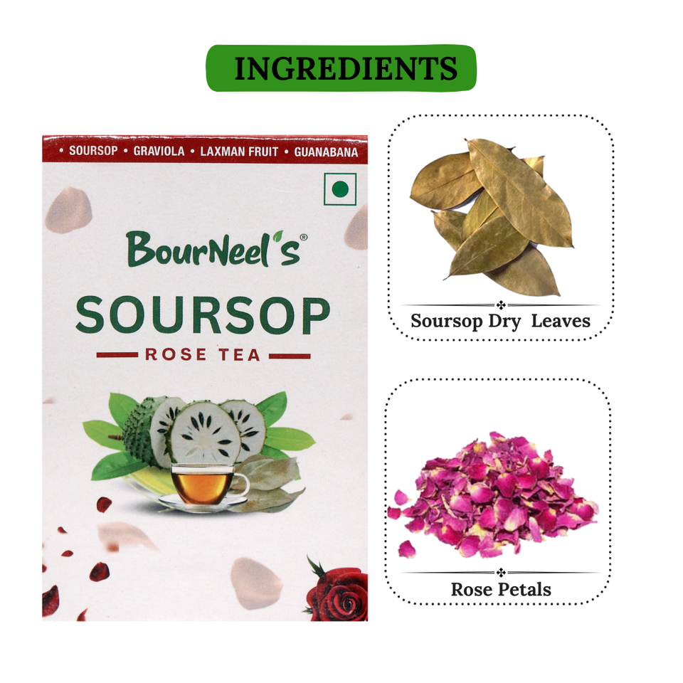Hojas secas de la soursop y pétalos de rosa secosIngredientes
