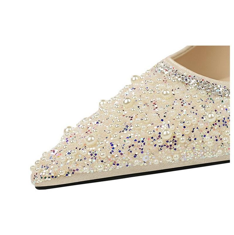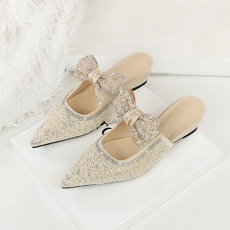 Zapatos de tacón de cuña con punta y perlas de imitación para mujer, sandalias elegantes para exteriores