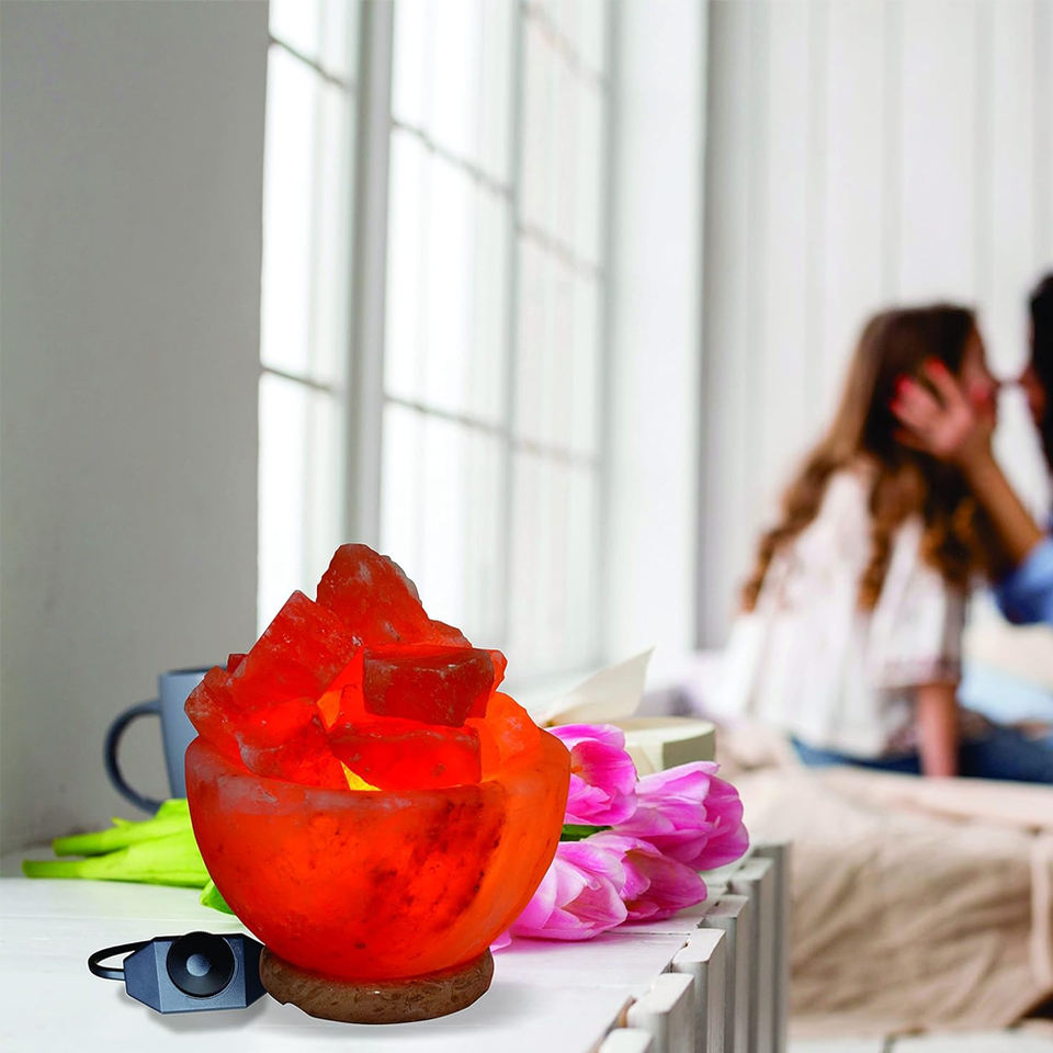 Lámparas de sal del Himalaya con forma de cuenco, la mejor lámpara de sal con forma de cuenco de fuego con buenas bolas de bombilla, lámpara de sal con forma de cuenco pulido de madera