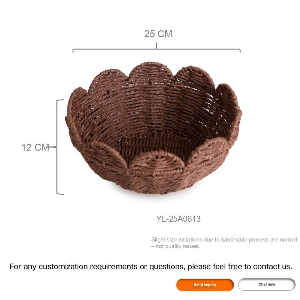 Cesta de Almacenamiento Tejida de Cuerda de Papel Marrón en Forma de Cuenco con Borde Festoneado para Frutas, Aperitivos, Entrada, Mesa de Cocina, Decoración del Hogar, Organizador