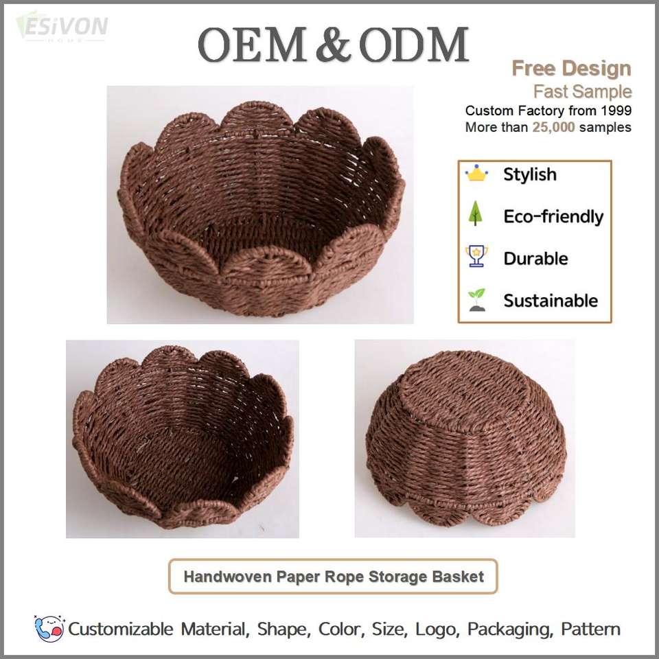 Palabra clave:Cesta de almacenamiento tejida para el hogar, cesta de almacenamiento de cuerda de papel