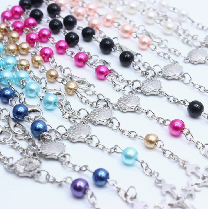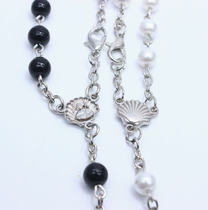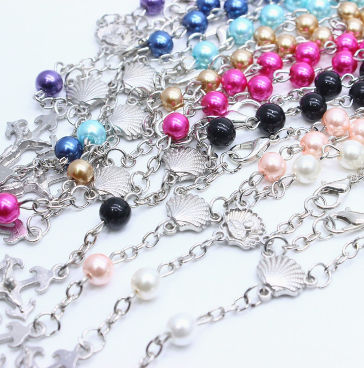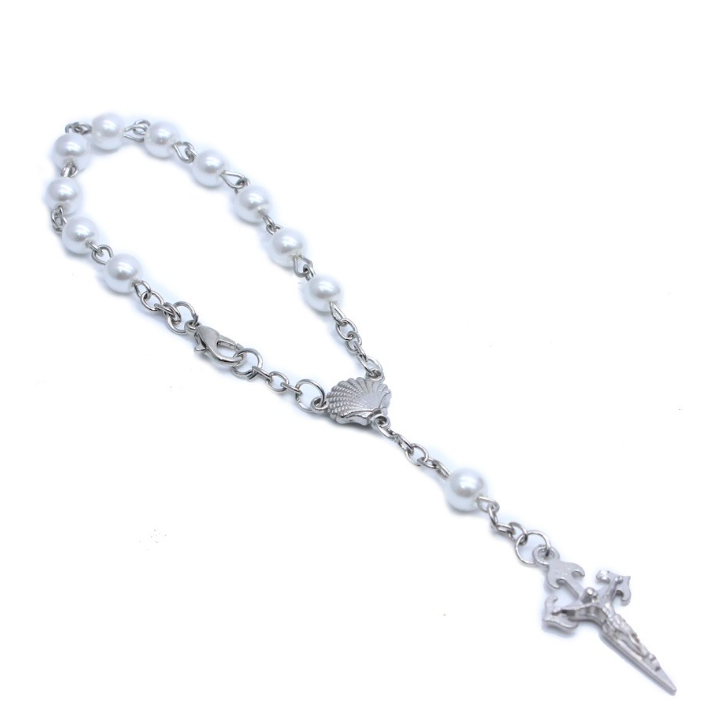Set de Rosario con Perlas de Concha de Santiago, Brazalete Religioso Católico, Regalo, Cuentas de Oración