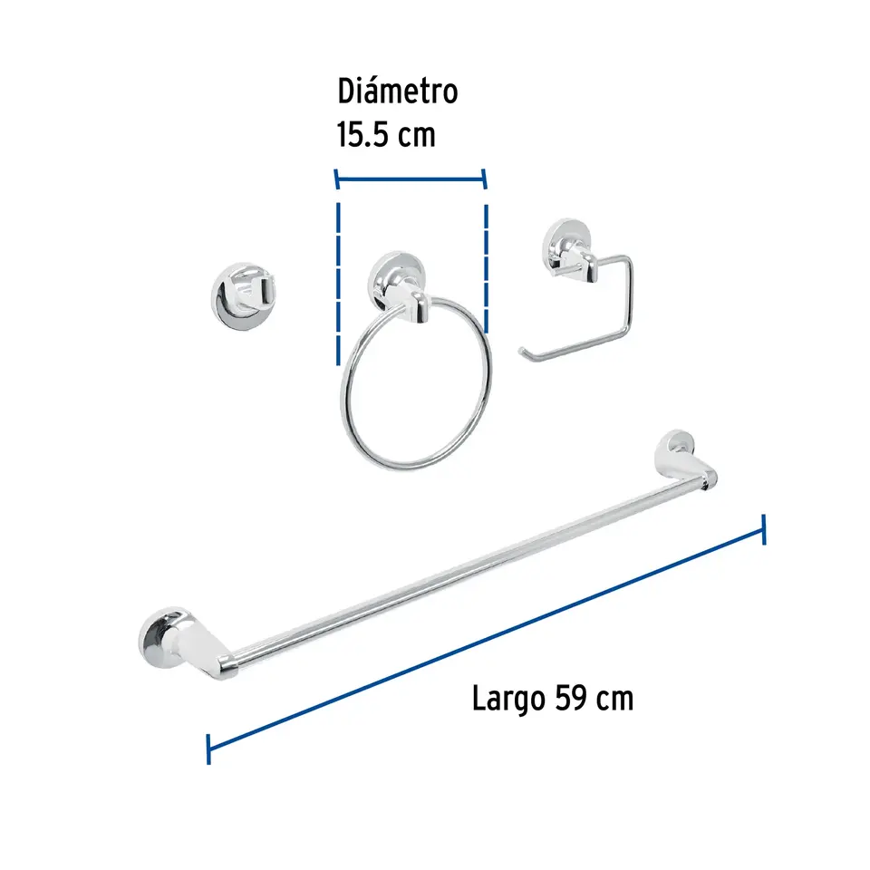 Caja con 2 unidades Juego de 4 accesorios de baño de metal, Foset Aqua