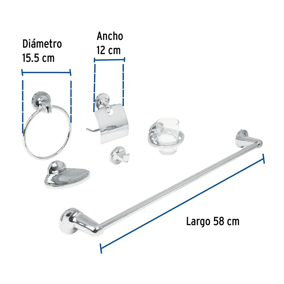 Caja con 2 unidades Juego de 6 accesorios de baño metálicos, Foset Aqua