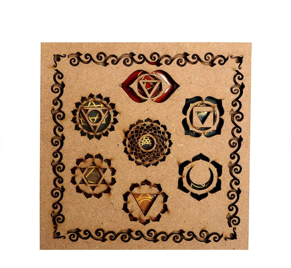 Caja con Gema Oval Chakra Set mayorista y Fabricante de Cristal Producto: 7 Chakra Oval Set Chakra Grabado Madera Amor