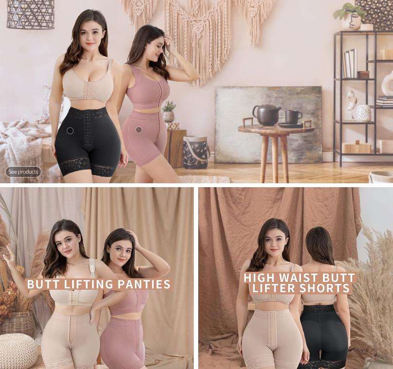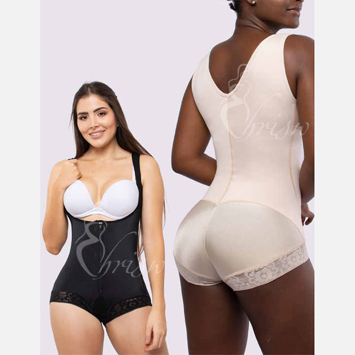 Boxer Sisa Presion Media Cuerpo de reloj de arena de alta compresión Fajas colombianas para mujeres Postoperatorio Pecho abierto Sin mangas