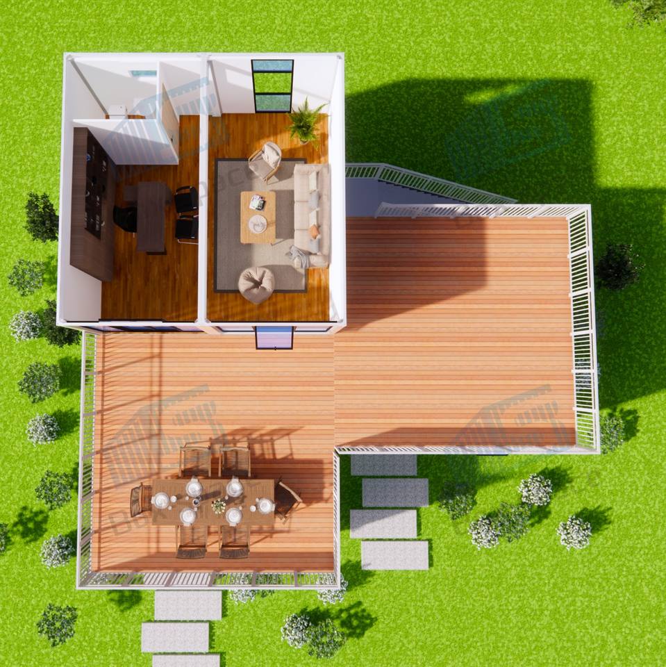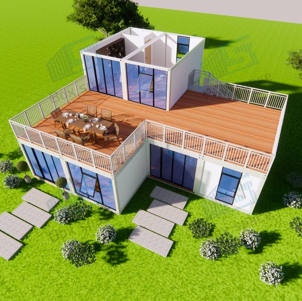 Casa Contenedor Modular Boxspace de 12*12m, 216 Metros Cuadrados, 2 Dormitorios y 1 Oficina en Casa con Terraza, Casa Contenedor de 2 Pisos