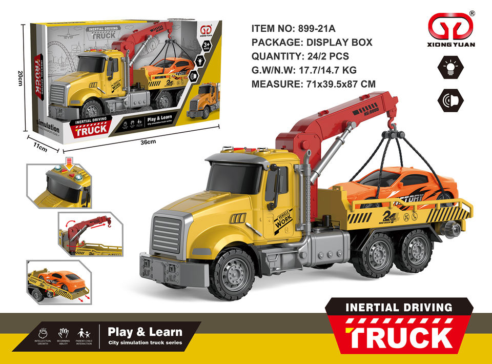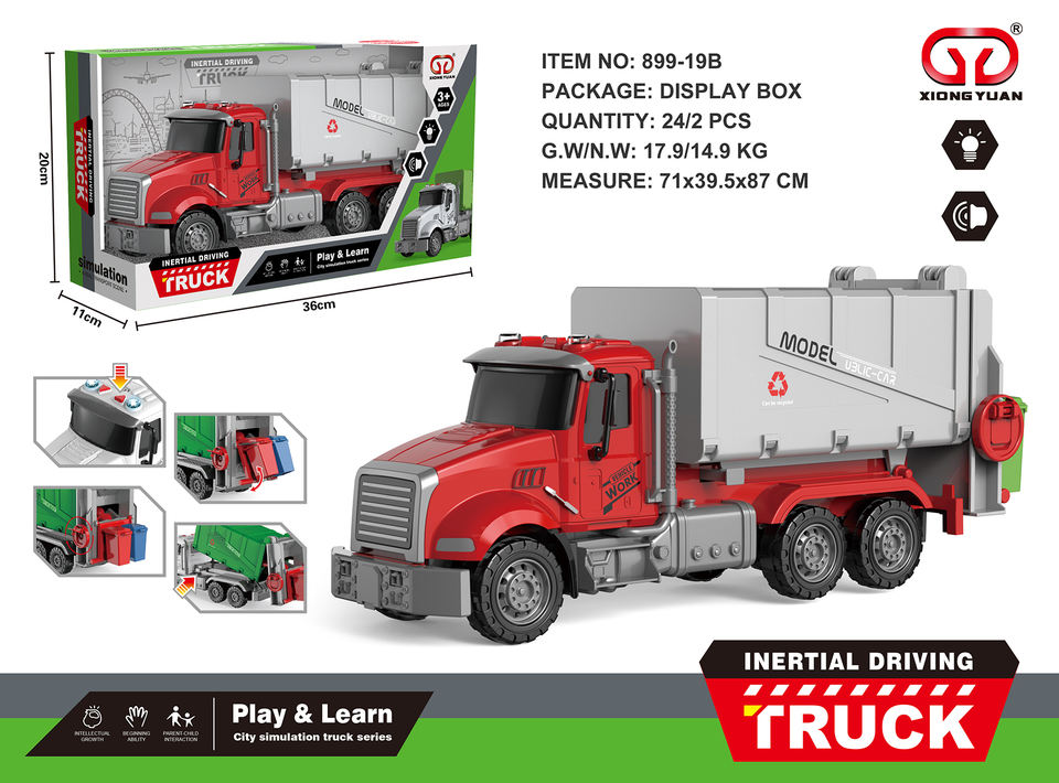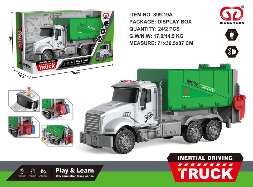Coche de fricción para niños, camión de remolque grande con gancho, vehículo de basura verde, modelo de transporte con iluminación y música