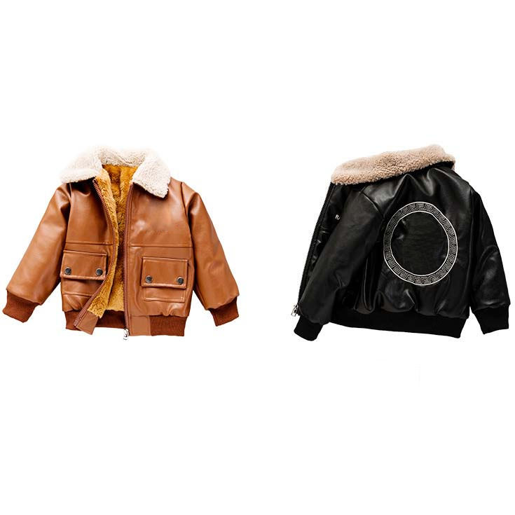 Niño invierno a prueba de viento Elegante ropa de bebé ropa de niños al por mayor 90-170cm PU cuero añadir algodón ropa de niños