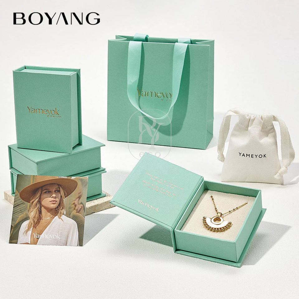 Boyang caja de embalaje reutilizable estilo libro de papel verde personalizada para regalo — para pendientes, collares y joyería