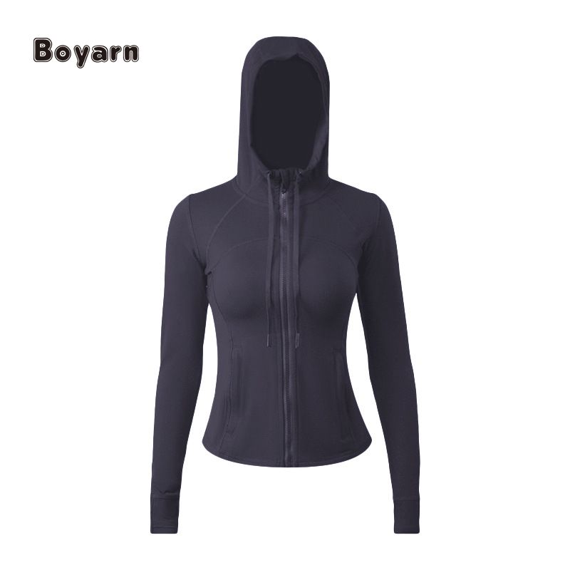 Boyarn de talla grande para mujer, abrigo de Fitness transpirable sin costuras, bolsillos con capucha, agujeros para los pulgares, Yoga, correr, gimnasio, Tops, chaqueta deportiva