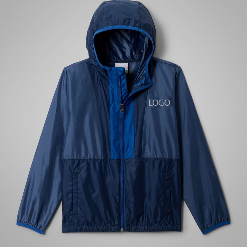 Chaqueta de Poliéster para Niños, Diseño de Bloques de Color, Material de Alta Calidad, Ropa Casual con Diseño de Logotipo Personalizado, Cierre de Cremallera