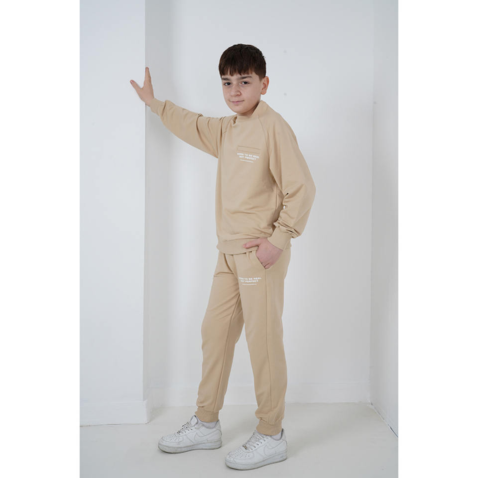 Chándal de cuello redondo de tela de doble hilo estampado para niños