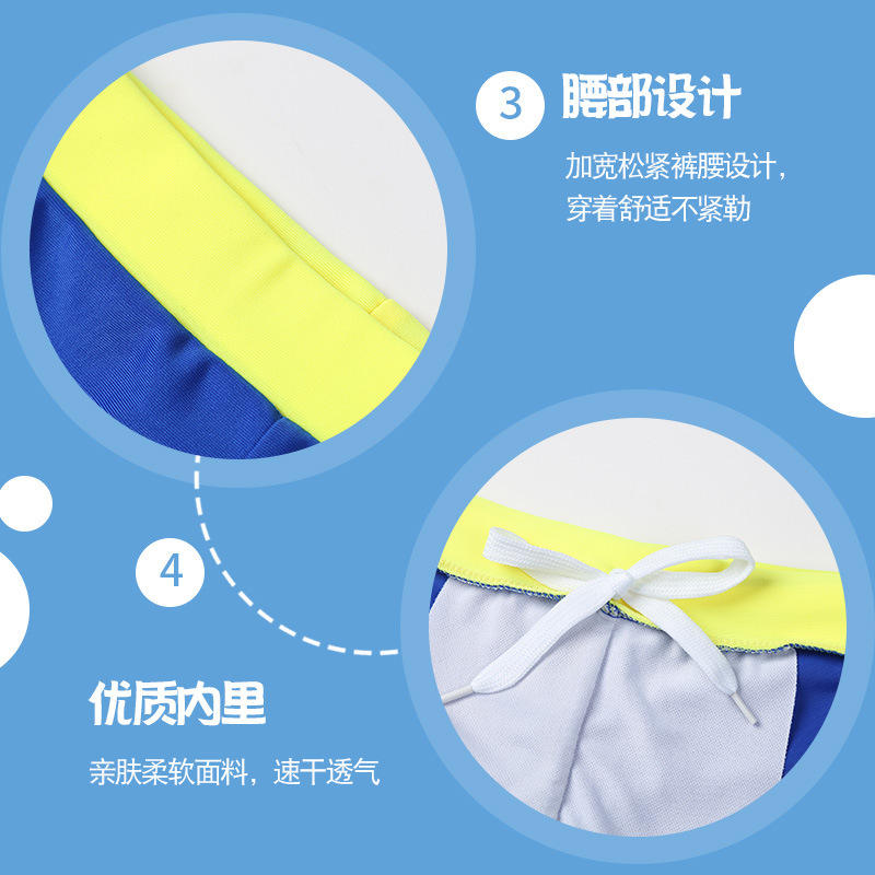 Traje de baño para niño de poliéster de secado rápido, amarillo con estampado de elefante, estilo deportivo