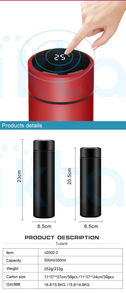 Termo de viaje para infusiones de té, botella de agua con aislamiento al vacío, con pantalla inteligente de temperatura, sin Bpa, 500ml, de acero inoxidable, con Led